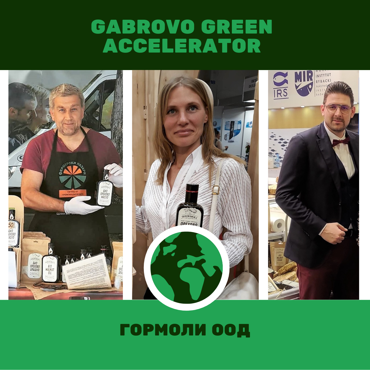 „Гормоли“ ООД е големият победител в завършилия Gabrovo Green Accelerator. Компанията печели наградата от 25 000 лева за предложението си да открие в Габрово занаятчийска работилница с магазинна част, в която на място да бъдат приготвяни пресни студено пресовани масла, брашна и тахани от най-различни видове био ядки и семена, като ще бъде следвана концепцията за зелена енергия и производство без опаковки и отпадъци. Компанията ще осигури собствен ресурс под формата на личен труд, умения, know-how, както и покриване на режийните разходи на обекта.